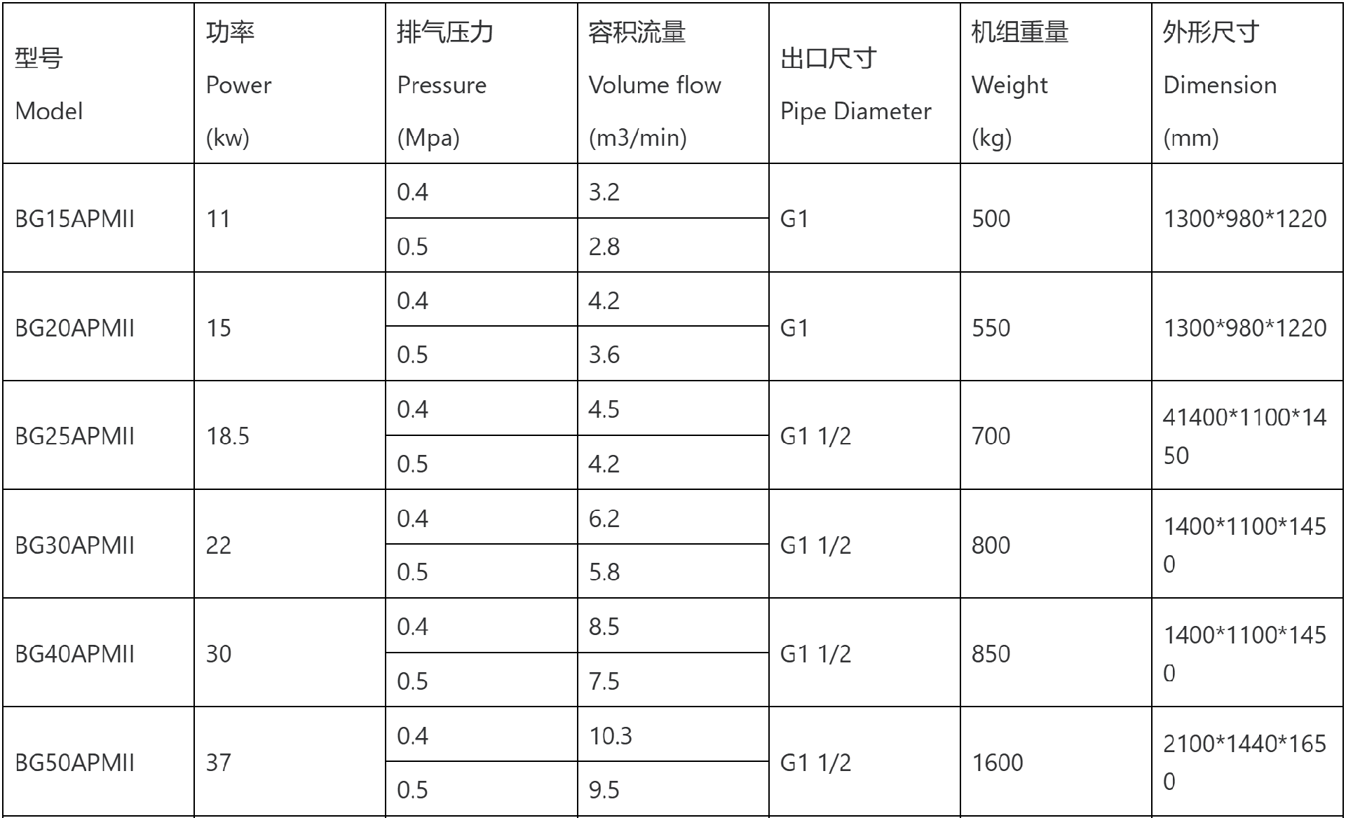 低压双级压缩永磁变频螺杆空压机技术参数/Technical parameter